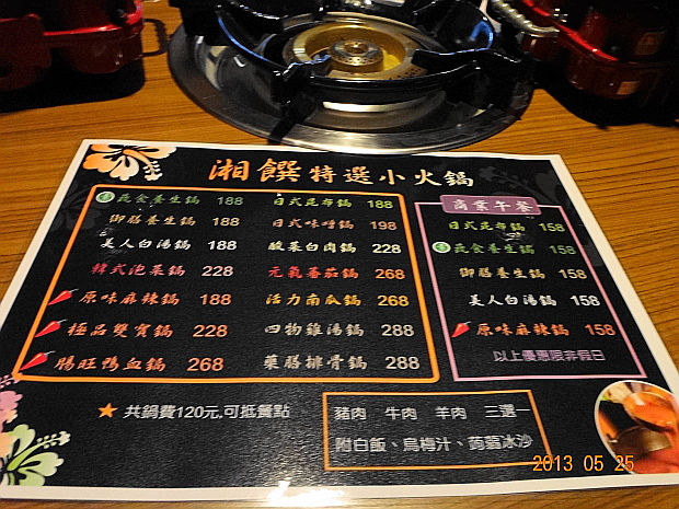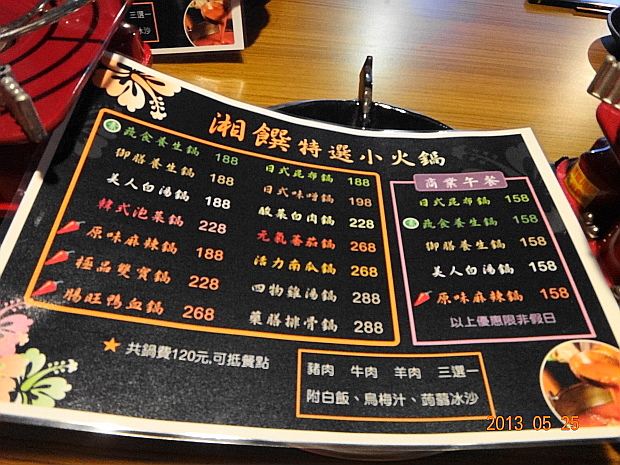 好不容易找到位子停好車、匆匆抵達2樓的[湘饌]時,服務人員表示:現在是還可以點餐,不過中午的用餐時間只到2:30,吃不完的火鍋可以打包回去吃。
