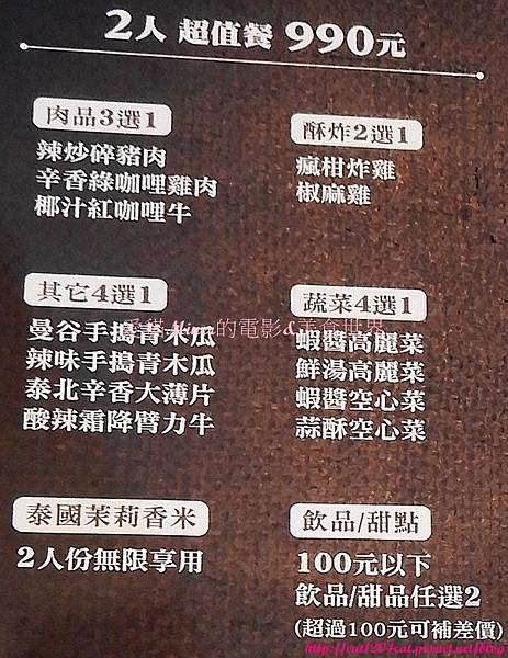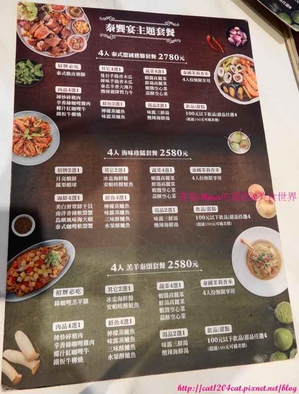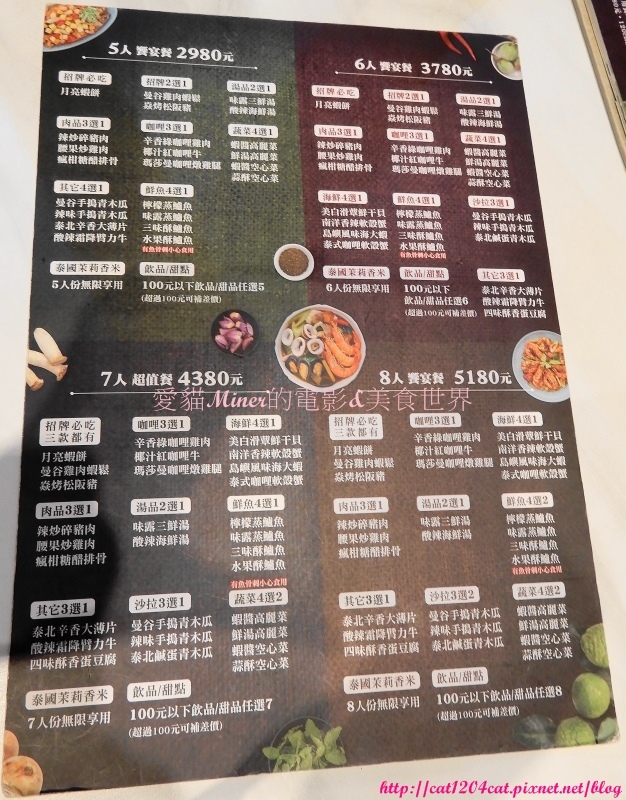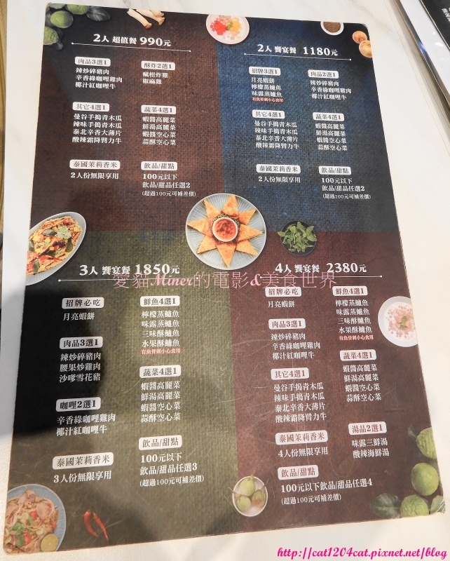 2.其它四選ㄧ(曼谷手搗青木瓜195元/辣味手搗青木瓜195元/泰北辛香大薄片270元/酸辣霜降臂力牛280元)