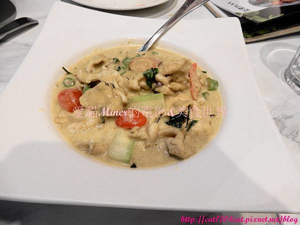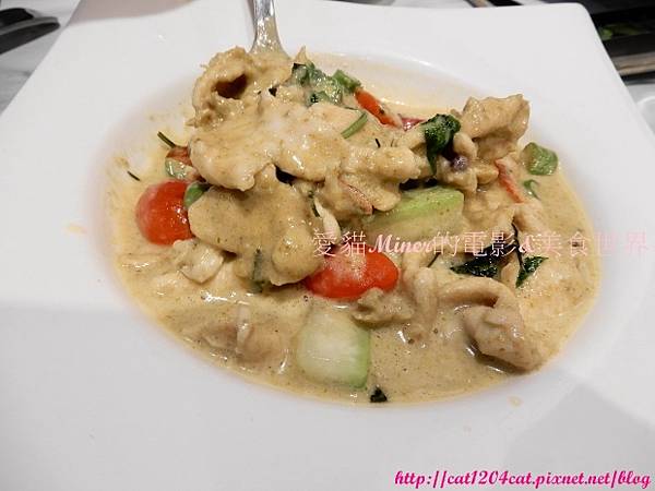 微辣又下飯的辛香綠咖哩雞肉,光是淋綠咖哩醬就可以多吃好幾口飯了說!