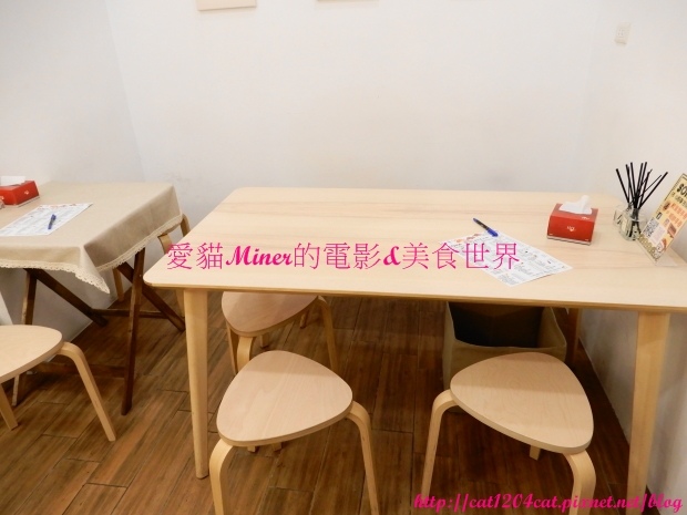 入內後,怕後續有客人來,早到的我們自己乖乖的選擇小小的兩人桌入座(中)。