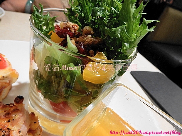 一旁還有附小番茄、堅果、生菜等,有和風醬&椒鹽可以沾著吃。
